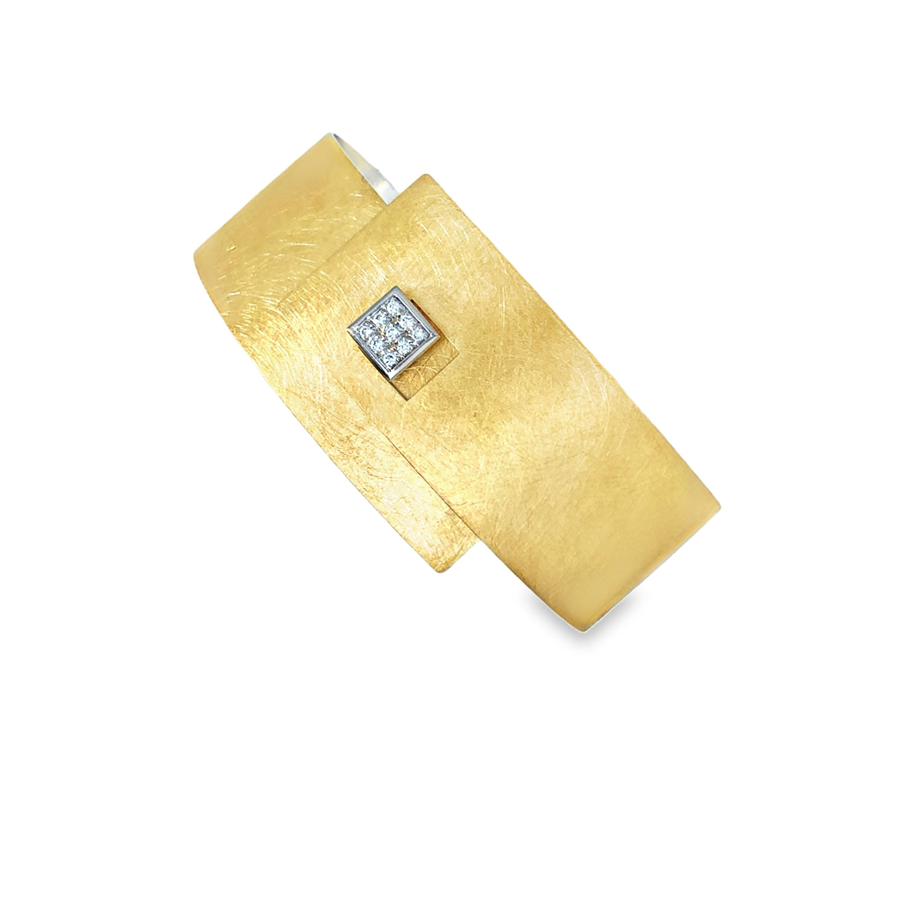 Der Armreif ME-060409 besticht durch edles Design: 925/- Silber, 900/- Gelbgold-Beschichtung, und ein 950/- Palladium-Schließknopf. Verziert mit 9 Brillanten, insgesamt 0,09 ct, W-VS. Perfekt geeignet, um schlichte Eleganz zu betonen. Am besten am Handgelenk tragen, um jedem Outfit einen luxuriösen Touch zu verleihen. ARM2 Armreif für stilvolle Anlässe.