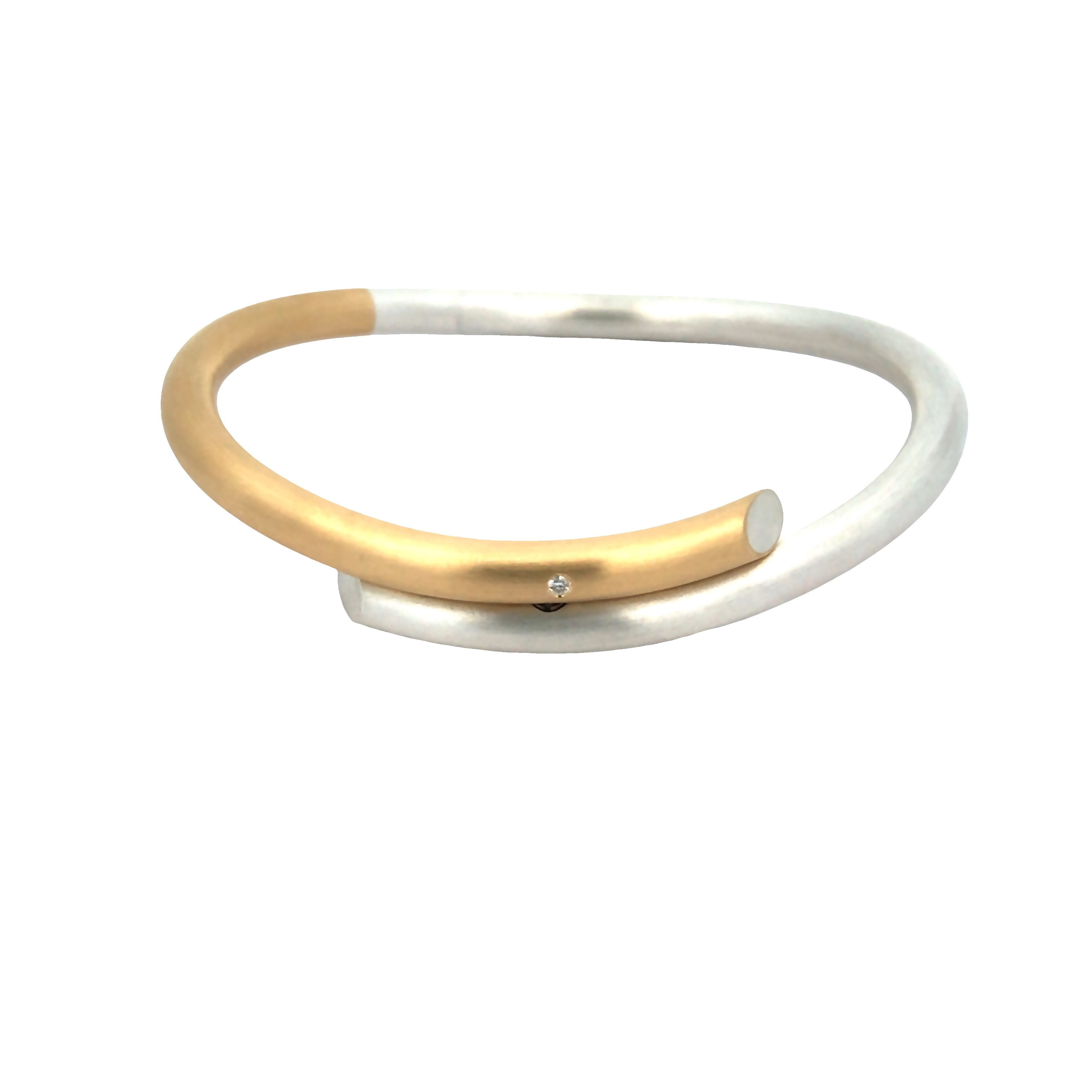 Dieser elegante Armreif aus 925/- Silber und 750/- Gelbgold ist mit einem funkelnden Brillanten von 0,02 ct (W-VS) verziert. Modellnummer: 1-20644. Ein perfektes Schmuckstück für jeden Anlass, um Ihr Handgelenk stilvoll hervorzuheben. Tragen Sie ihn solo oder kombinieren Sie ihn mit anderen Armreifen für einen trendigen Look.