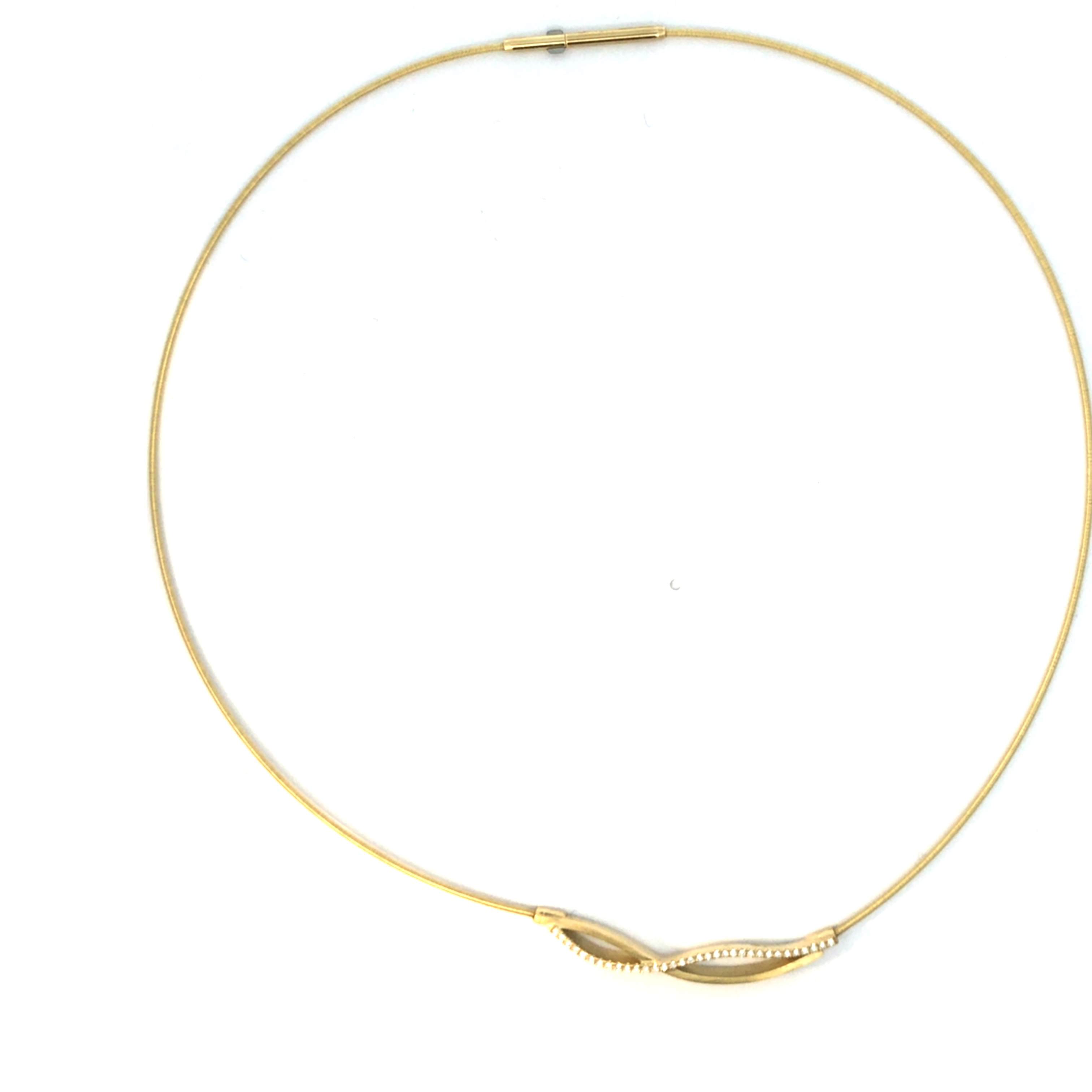 Dieses Collier, Modellnummer 2-31991, besticht durch 585er Gelbgold und einen Brillanten von 0,17 ct in Qualität w-if. Die einzigartige Spirale mit einem Durchmesser von 10mm und einem Edelstahlkern verleiht ihm besonderes Flair. Ideal für elegante Anlässe – es verleiht jedem Outfit einen luxuriösen Touch. Perfekt zum Tragen über einem schlichten Kleid oder Bluse.