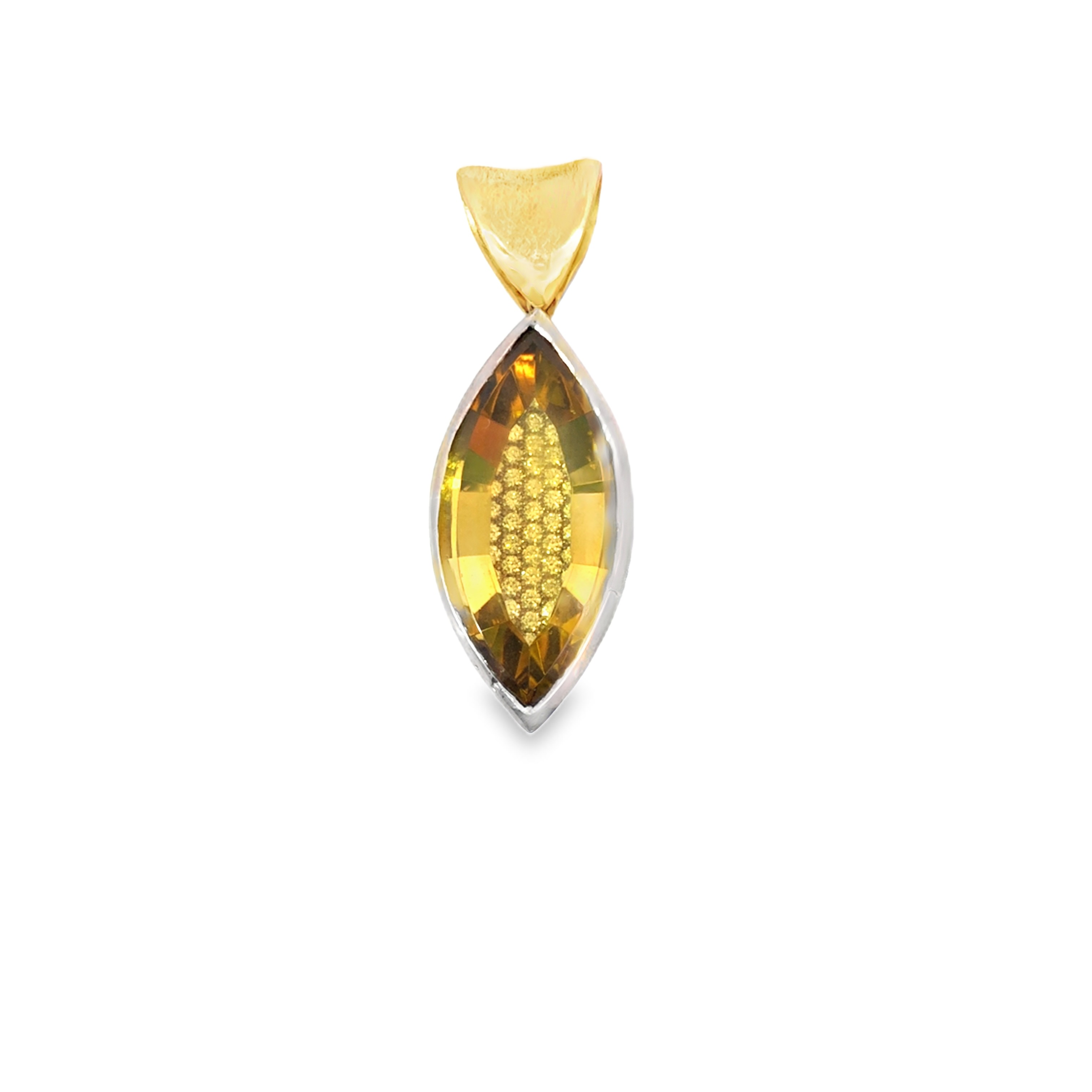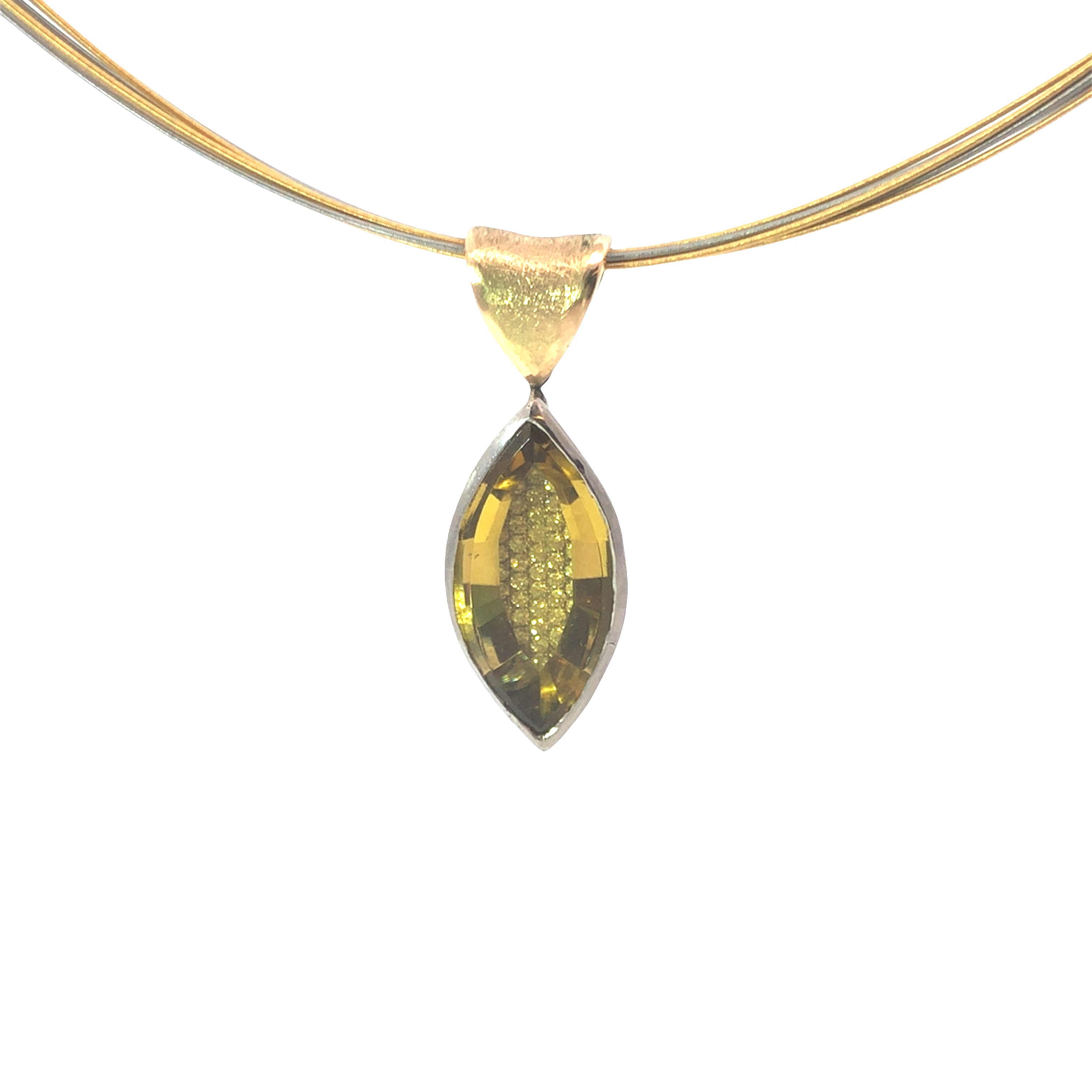 einem Goldberyll mit 11,62ct. Am schönsten am Rundhals Collier, da die Aufhängung asymetrisch ist.