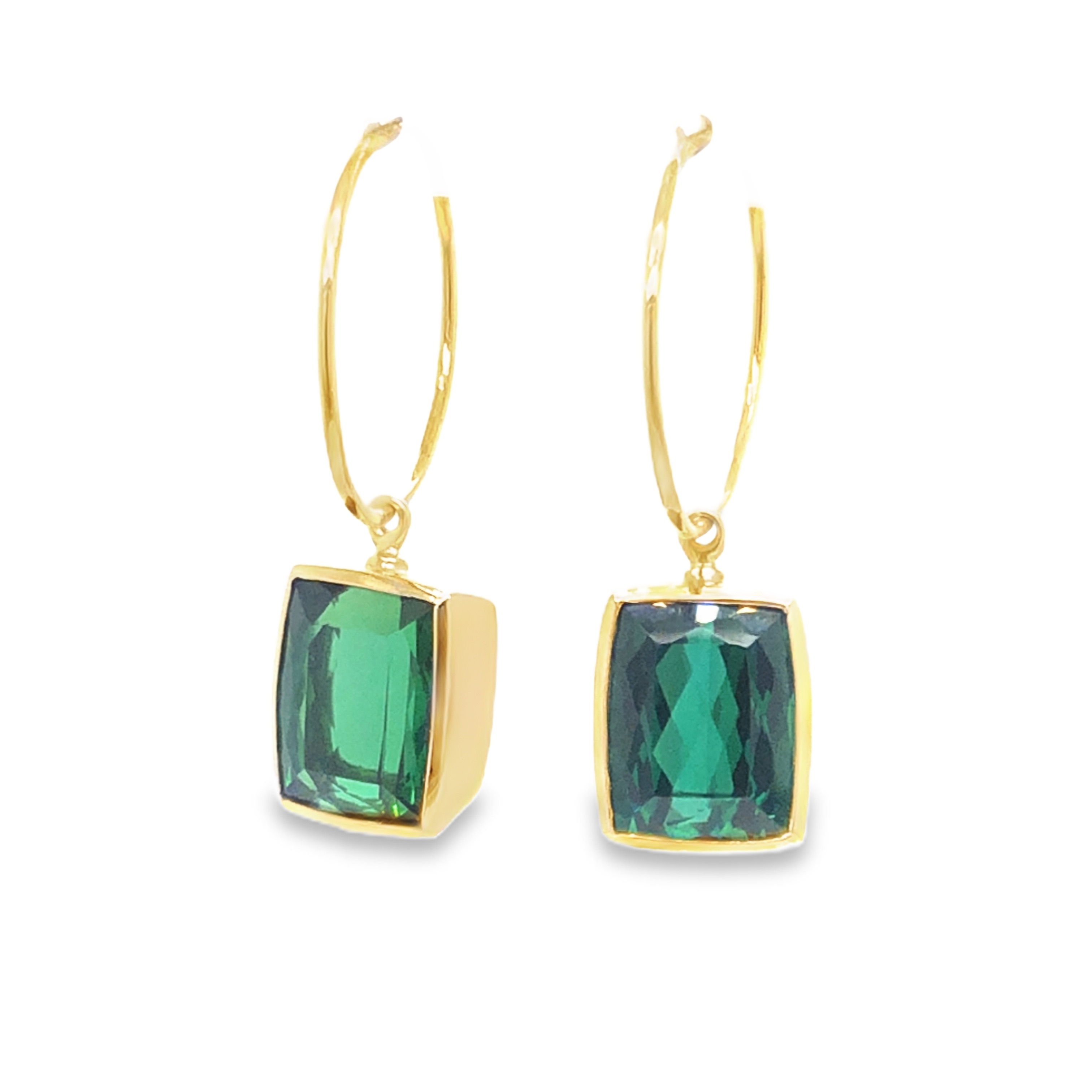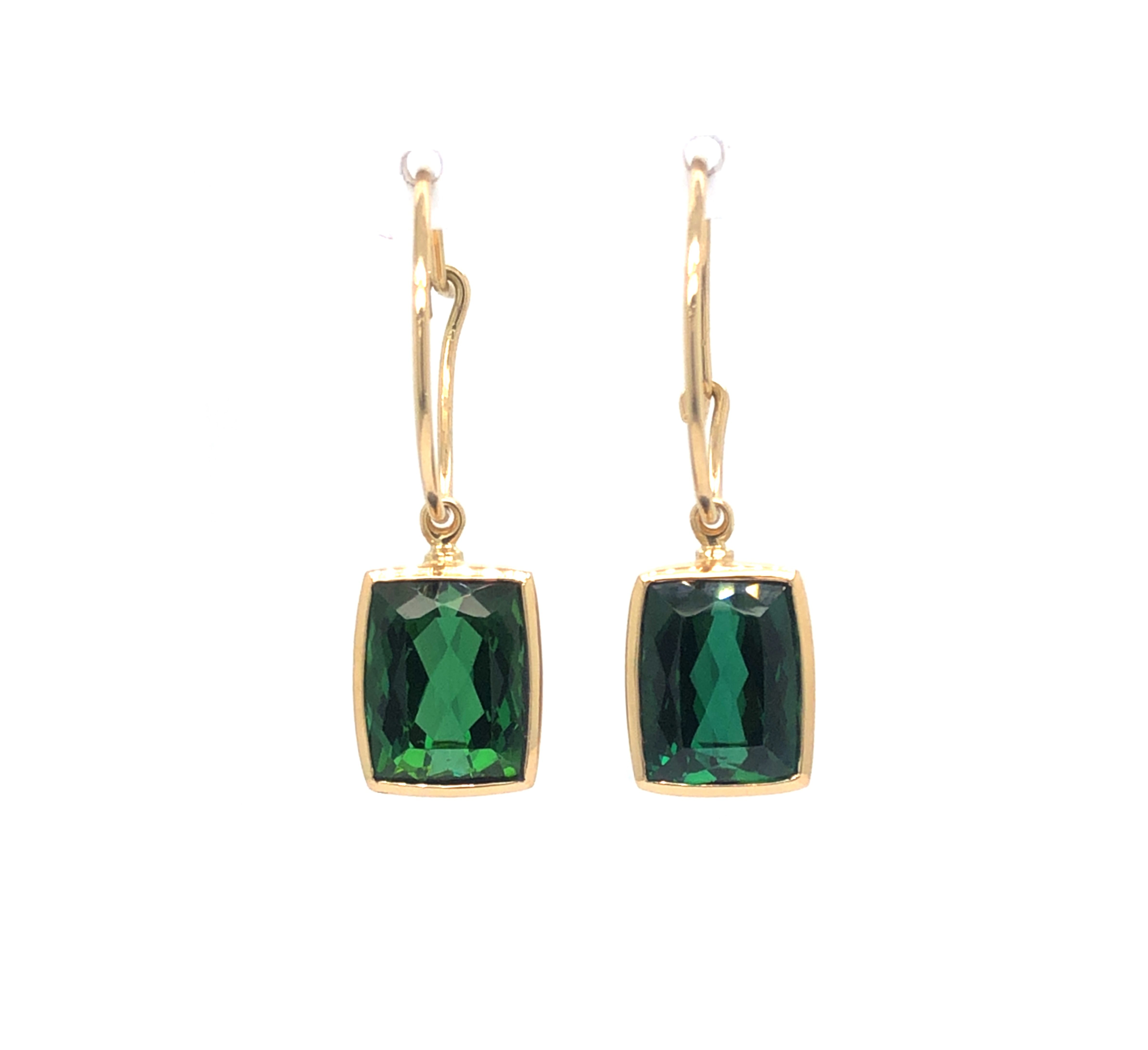 klassisch gearbeiteter Ohrschmuck, 2 Turmaline in Spitzenqualität, in Gold 750 gefasst, zusammen über 16 Karat!