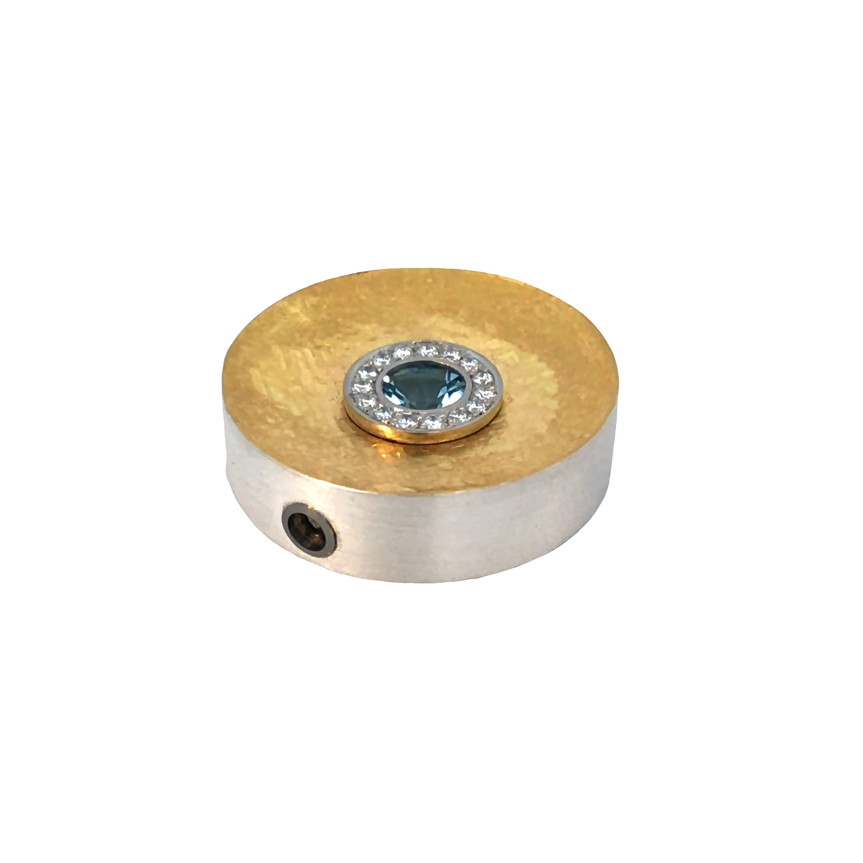 Die Schließe, Modellnummer 1-31713A, besteht aus 925er Silber, 900er Gelbgold, 950er Palladium-Fassung mit 15 Brillanten (insgesamt 0,15 ct., W-VS) und einem facettierten Aquamarin (6 mm). Ideal für Collier-Kreationen. Am besten tragen Sie es, indem Sie es als elegantes Highlight an Ihrem Lieblings-Collier befestigen, um einen Hauch von Luxus zu verleihen.