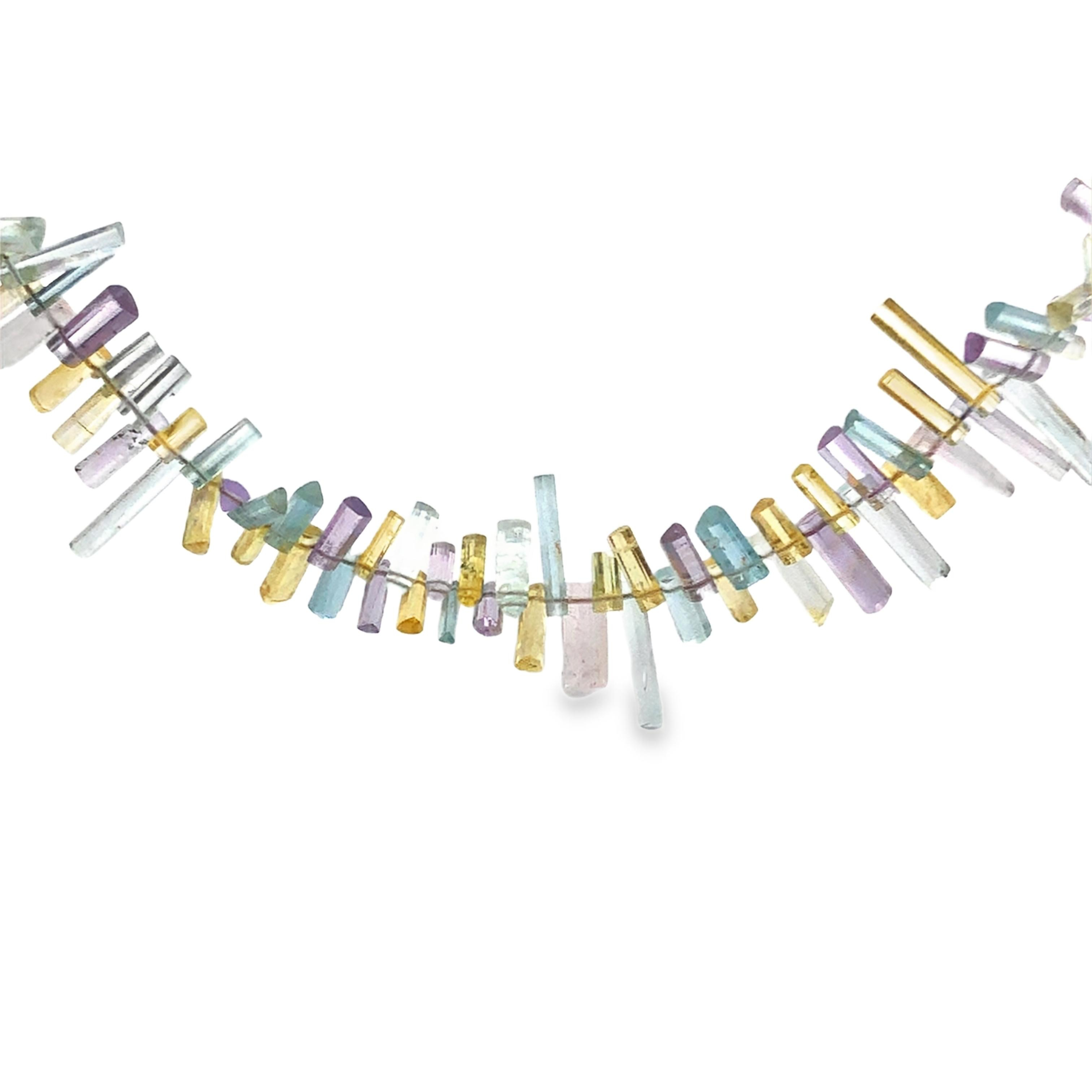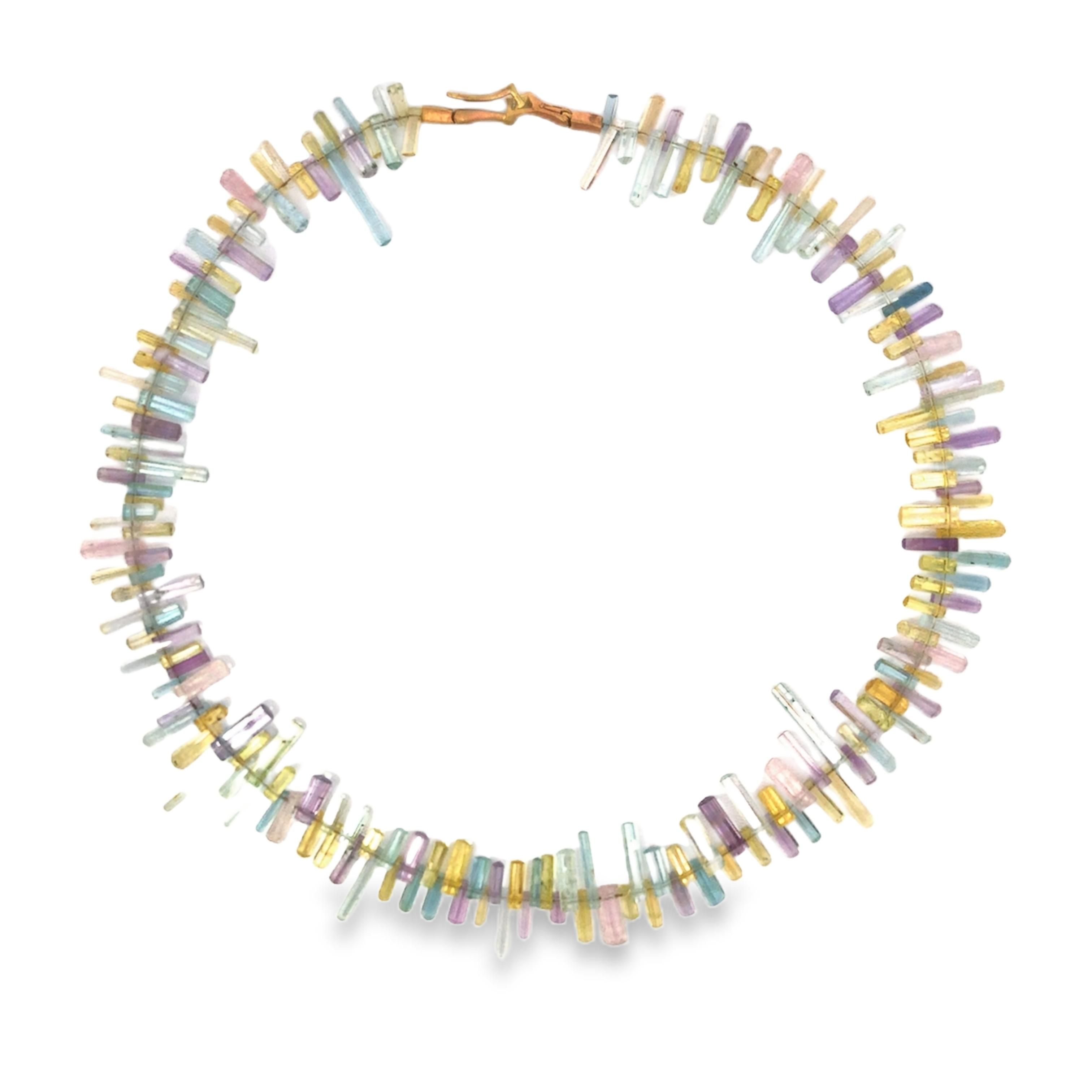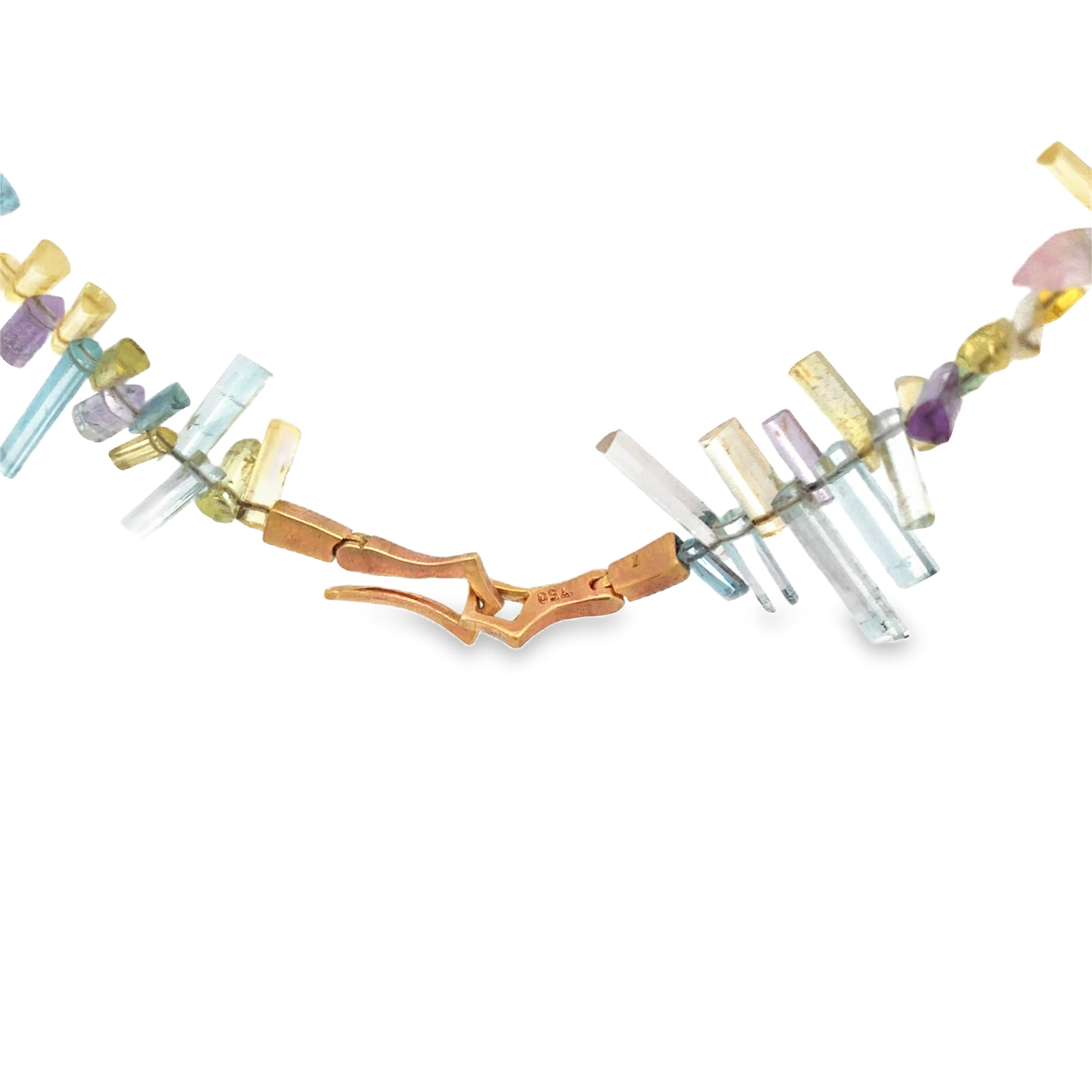 Steinkette (Aquamarin, Beryll, Amethyst) gefertigt mit einer Rotgold 750 Sicherheits-Haken-Schließe.